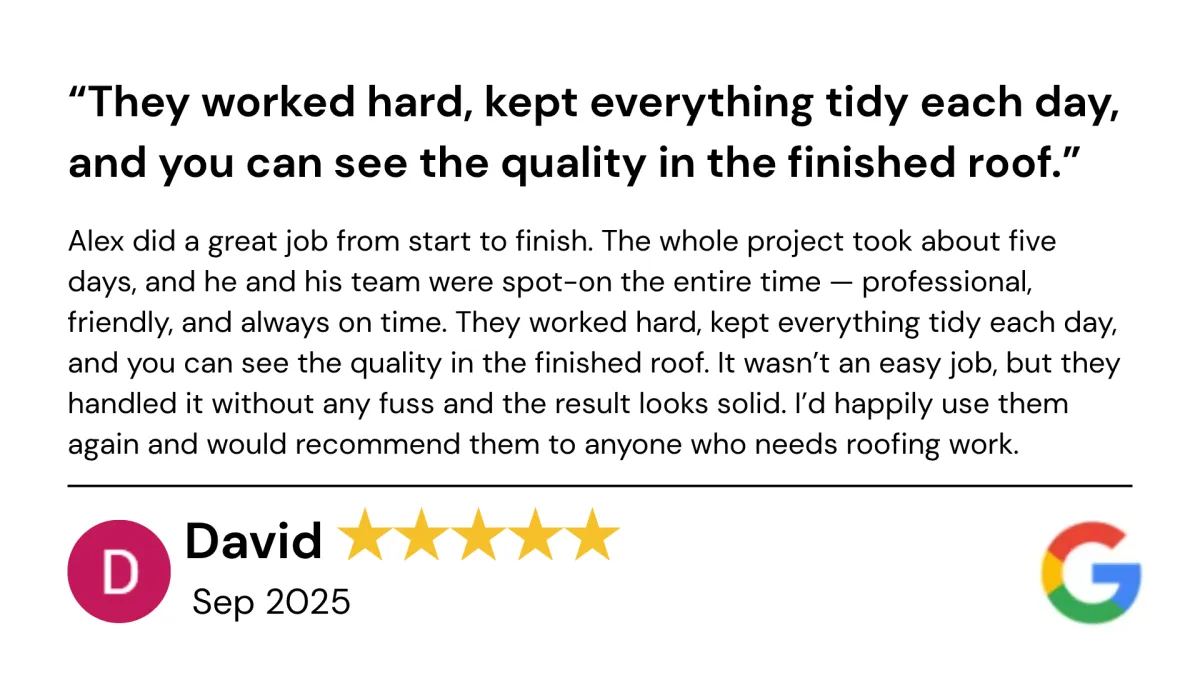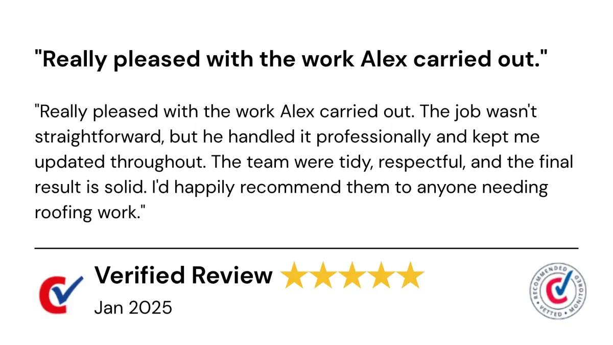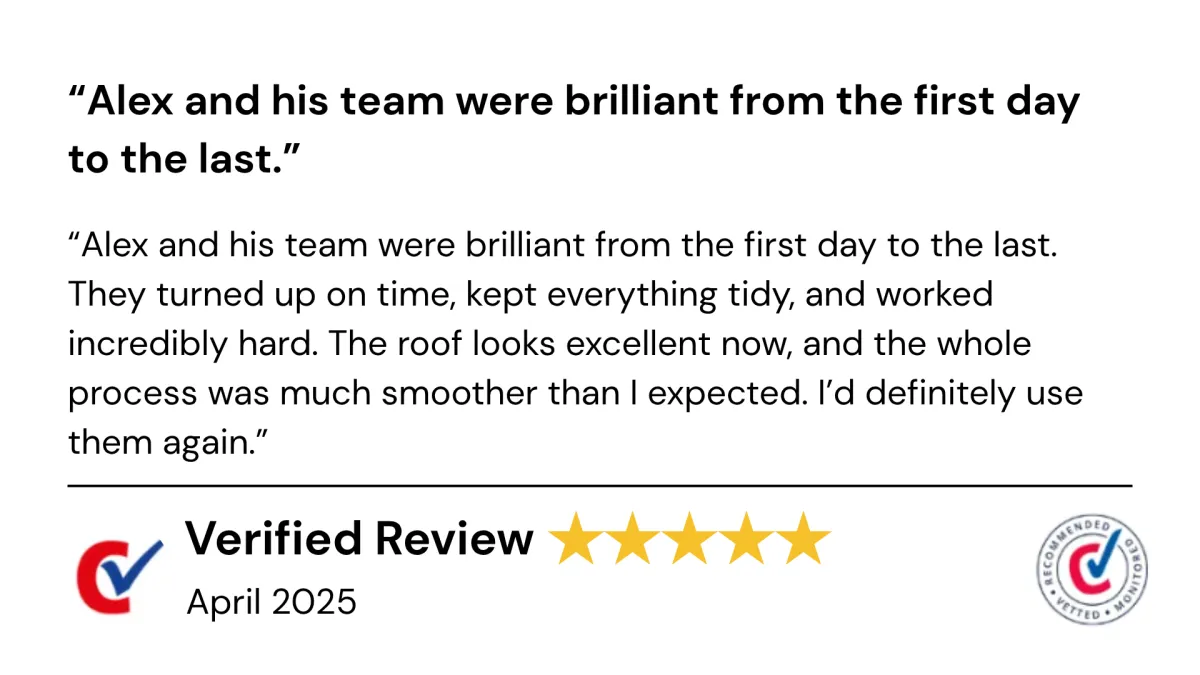 "Hi I'm Alex and I've been roofing in Bournemouth and surrounding areas for over 16 years. I started this family business with one goal - to give homeowners a straight, honest service without the hard sell or hidden costs.